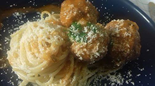 Num tacho refogue com a cebola, o funcho, o louro e o alho, sem queimar. Coloque as bolinhas uma a uma, dando espaço para que não se desmanchem e que fritem em todos os lados, adicione o tomate picado, e o vinho branco e o caldo de carne (que reservaram noutras alturas), e o ramos das ervas, tempere a gosto com pimenta e sal. Deixe cozinhar e acompanhe com esparguete.